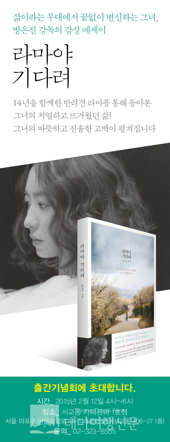 Ä¡¿ÇÏ°Ô ²Þ²Ù°í ¶ß°Ì°Ô »îÀ» »ç¶ûÇÑ <¿À·Î¶ó°øÁÖ>, <¿ëÀÇÀÚX>, <ÁýÀ¸·Î °¡´Â ±æ>ÀÇ ¿µÈ°¨µ¶ ¹æÀºÁøÀÇ Áø¼ÖÇÑ °í¹éÀÌ ´ã±ä ¡º¶ó¸¶¾ß ±â´Ù·Á¡»°¡ ºÏÇϿ콺¿¡¼ Ãâ°£µÉ ¿¹Á¤ÀÌ´Ù. ÀúÀÚ ¹æÀºÁøÀº 14³âÀ» ÇÔ²²ÇÑ ¹Ý·Á°ß ¶ó¸¶¸¦ ÅëÇØ ÀÚ½ÅÀÇ »îÀ» ´ã¾Æ³½ ù Ã¥À» Ãâ°£ÇÔÀ¸·Î½á ±×µ¿¾È ¾Ë·ÁÁöÁö ¾Ê¾Ò´ø ¶Ç ´Ù¸¥ ¸ð½ÀÀ¸·Î µ¶ÀÚµéÀ» ¸¸³¯ ¿¹Á¤À̸ç Ã¥¿¡ ´ã±ä Áø½ÉÀ» ÀúÀÚÀÇ ¸ñ¼Ò¸®·Î Á÷Á¢ ÀüÇϱâ À§ÇØ 2015³â 2¿ù 12ÀÏ Ãâ°£±â³äȸ¸¦ ÁøÇàÇÑ´Ù. ¼¼ ÆíÀÇ ÀåÆí¿µÈ¸¦ ¿¬ÃâÇÑ °¨µ¶ ¹æÀºÁø, 2000³â´ë µé¾î »õ·Î ¾´ ±×³àÀÇ °¨µ¶ Çʸð±×·¡ÇÇ ¾Õ ÆäÀÌÁö¿¡¼ ±×³à´Â û·æ¿µÈ»ó, Ãá»ç¿µÈ»ó, ¿µÈÆò·Ð°¡Çùȸ»óÀÇ ¿©¿ìÁÖ¿¬»óÀ» ÈÛ¾µ¸ç Æ®¸®Çà ũ¶ó¿îÀ» ´Þ¼ºÇÑ ¸íǰ ¹è¿ì¿´´Ù. ±×º¸´Ù ¾Õ¼ ±×³à´Â ´ëÇѹα¹ ¹ÂÁöÄÃÀÇ ¿ª»ç¸¦ »õ·Î ¾´ ·Ï ¹ÂÁöÄà <ÁöÇÏö 1È£¼±>ÀÇ ÃÊ¿¬ ¸â¹ö·Î 4000ȸ ±â³ä°ø¿¬±îÁö ÇÔ²²ÇÑ ¹ÂÁöÄà ¹è¿ìÀÌÀÚ ¿¬±Ø¹è¿ì¿´´Ù. ¿ì¸®¿¡°Ô ¾Ë·ÁÁø °ÍÀº ¿©±â±îÁö. Ç¥¸éÀûÀ¸·Î È·ÁÇϱ⸸ ÇÑ ±×³àÀÇ »î¿¡¼ °¡Àå ¼ÒÁßÇÑ °ÍÀÌ ¹«¾ùÀÎÁö ¹¯ÀÚ ±×³à´Â ¸Á¼³ÀÌÁö ¾Ê°í ¸»ÇÑ´Ù.