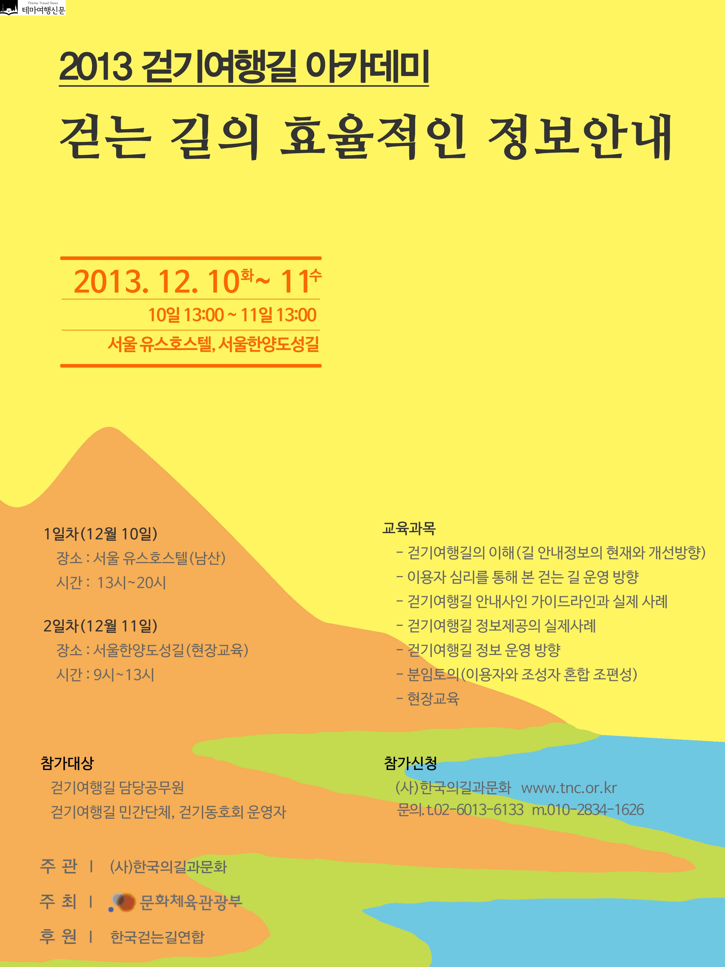 ¹®ÈüÀ°°ü±¤ºÎ ÁÖÃÖ, (»ç)Çѱ¹ÀDZæ°ú¹®È(ÀÌ»çÀå ¾çº´ÀÌ) ÁÖ°ü, Çѱ¹°È´Â±æ¿¬ÇÕ(´ëÇ¥ ¼¸í¼÷)ÀÌ ÈÄ¿øÇÏ´Â ¡®2013 °È±â¿©Çà±æ ¾ÆÄ«µ¥¹Ì¡¯°¡ 12¿ù 10ÀÏ(È) ¿ÀÈÄ 2½ÃºÎÅÍ 12¿ù 11ÀÏ(¼ö) ¿ÀÈÄ 1½Ã±îÁö ¼¿ïÀ¯½ºÈ£½ºÅÚ ´ëȸÀǽǰú ¼¿ïÇѾ絵¼º±æ¿¡¼ ¿¸°´Ù.