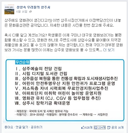 ÇÑ ÆäÀ̽ººÏ ÆäÀÌÁö(»ó»ó¼Ó ¿ì¸®µéÀÇ »óÁÖ½Ã)¿¡ »óÁÖ½ÃÀåÀ¸·Î ´ç¼±µÈ ÀÌÁ¤¹é½ÃÀåÀÇ ¹®ÈÀ¶¼º°ü·Ã °ø¾à¿¡ ´ëÇÑ ÀþÀº Çлýµé(´©¸®²Ûµé)ÀÇ °ü½ÉÀÌ ¶ß°Ì´Ù.
