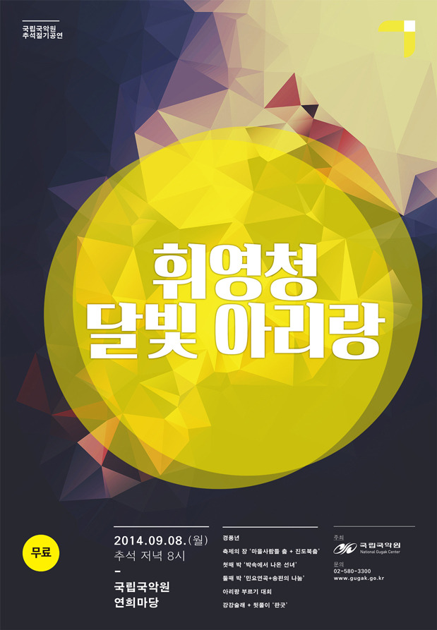 1. °ø¿¬¸í : 'ÈÖ¿µÃ» ´Þºû¾Æ¸®¶û' 2. Àå¼Ò : ±¹¸³±¹¾Ç¿ø ¿¬Èñ¸¶´ç 3. ³¯Â¥ : 2014³â 9¿ù 8ÀÏ (¿ù¿äÀÏ) 4. ½Ã°£ : Àú³á 8½Ã 5. ƼÄÏ·á : ¹«·á 6. ¹®ÀÇ : 02-580-3300 7. °ø¿¬Á¤º¸ ´õº¸±â ¢º http://me2.do/xbI0cHwh ¡ß Ã⿬Áø : ¾È¼÷¼±, ³²»óÀÏ, ±¹¸³±¹¾Ç¿ø ¹«¿ë´Ü, ±¹¸³±¹¾Ç¿ø ¹Î¼Ó¾Ç´Ü