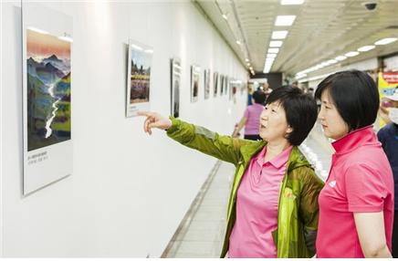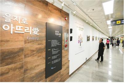 ¾Æ¶ß¸®¾Ö °¶·¯¸®´Â ÁöÇÏö 2È£¼± À»Áö·Î 4°¡¿ª°ú µ¿´ë¹®¿ª»ç¹®È°ø¿ø¿ª »çÀÌ ÁöÇϺ¸µµ º®¸é¿¡ Á¶¼ºµÈ Àü½Ã°ø°£ÀÌ´Ù.