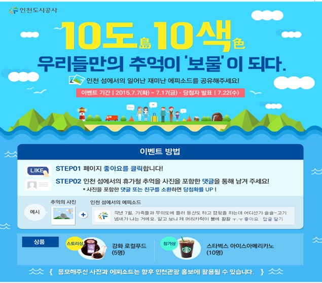 ÀÎõ±¤¿ª½Ã(½ÃÀå À¯Á¤º¹)¿Í ÀÎõµµ½Ã°ø»ç(»çÀå ±è¿ì½Ä)´Â 7~8¿ù º»°ÝÀûÀÎ ¿©¸§ ÈÞ°¡Ã¶À» ¸Â¾Æ ¿À´Â 7¿ù 17ÀϱîÁö ¡®10µµ(Óö) 10»ö(ßä), ¿ì¸®µé¸¸ÀÇ Ãß¾ïÀÌ º¸¹°ÀÌ µÇ´Ù¡¯ À̺¥Æ®¸¦ °³ÃÖÇÑ´Ù°í ¹àÇû´Ù.