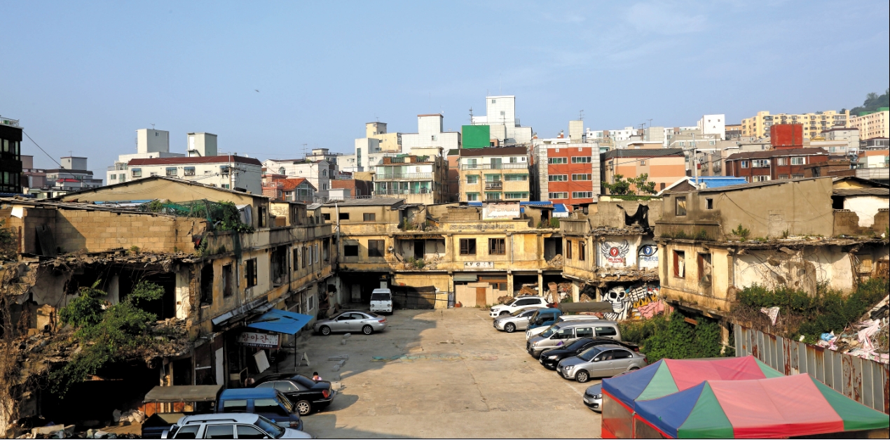 Á¦¹°Æ÷½ÃÀå °Å´ëÇÑ ¹üÁË Á¶Á÷¿¡ ¾ôÈù ³²ÀÚµéÀÇ À̾߱⸦ ´Ù·é ´©¾Æ¸£ ¿µÈ <½Å¼¼°è>. °æÂû¿¡¼ Á¶Á÷ÀÇ 3ÀÎÀÚ·Î ¼ºÀåÇÑ ÁÖÀΰø(ÀÌÁ¤Àç)°¡ ±×ÀÇ Á¶Á÷°ú Á¢¼±Çϸç È¥µ·¿¡ ºüÁö´Â Àå¸éÀº ÀÎõ Á¦¹°Æ÷½ÃÀå¿¡¼ ÃÔ¿µÇß´Ù. 1972³â ¹®À» ¿¬ Á¦¹°Æ÷½ÃÀåÀº 1980³â´ë±îÁö¸¸ ÇØµµ Ȱ±â°¡ ³ÑÃÆ´Ù. ¼öºÀ»ê ÀÚ¶ô¿¡ ÁÖÅð¡¿Í Çб³°¡ ¸ô·Á ÀÖ¾î ´Ã »ç¶÷µé·Î µé²ú¾úÀ¸³ª, Áö±ÝÀº ¸ðµÎ ºüÁ®³ª°í Å͸¸ µ¢±×·¯´Ï ³²¾Ò´Ù. 1997³â Àç°³¹ß »ç¾÷ Áö±¸·Î ÁöÁ¤µÆÀ¸³ª, ÇöÀç±îÁö ´äº¸ »óÅ´Ù. À̰÷ÀÌ ¼¼»óÀÇ °ü½ÉÀ» ¹ÞÀº °Ç 2011³â ÀÛ <½á´Ï>¸¦ ÃÔ¿µÇϸ鼺ÎÅÍ´Ù. ³²±¸°¡ ÁÖ ¹è°æÀ̾ú´ø ÀÌ ¿µÈ¿¡¼ ¿©°í»ý ½á´ÏÆÄ¿Í ¼Ò³à½Ã´ëÆÄ°¡ ¿©±â¼ ¡®¿å ¹èƲ¡¯À» ÇÏ¸ç °ü°´¿¡°Ô ¿ôÀ½À» ¾È°å´Ù. ÀÌÈÄ <½Å¼¼°è>, µå¶ó¸¶ <Ȳ±ÝÀÇ Á¦±¹>, ´í½º ¼¹ÙÀ̹ú ÇÁ·Î±×·¥ <´í½Ì 9>ÀÇ ¿ÀÇÁ´×µµ À̰÷¿¡¼ ÃÔ¿µÇß´Ù. ÀÌ´Þ ¿µÈ <¾Æ¼ö¶ó>µµ ÃÔ¿µÇÒ ¿¹Á¤ÀÌ´Ù. ¼öºÀ°ø¿ø°ú Á¦¹°Æ÷¿ª »çÀÌ¿¡ À§Ä¡ÇØ ÀÖ´Ù. ºÎÆò±¸ ½ÊÁ¤µ¿ ¿¿ì¹°º®È¸¶À» ºÏÇÑ¿¡¼ ³²ÆÄµÈ ÃÖÁ¤¿¹ °£Ã¸ÀÌ ´Þµ¿³× ¹Ùº¸ ¹é¼ö·Î À§ÀåÇØ »ýȰÇÏ´Â ¸ð½ÀÀ» ±×¸°, ¹è¿ì ±è¼öÇö ÁÖ¿¬ÀÇ ¿µÈ <Àº¹ÐÇÏ°Ô À§´ëÇϰÔ>ÀÇ ÁÖ ¹«´ë´Â ºÎÆò±¸ ½ÊÁ¤µ¿ ¿¿ì¹°º®È¸¶À»ÀÌ´Ù. ÀÌ ¸¶À»Àº 1960³â´ë ¸» µ¿±¸ ¸¸¼®µ¿°ú ÁÖ¾È, ¸Ö¸® ¼¿ï¿¡¼ºÎÅÍ ¿À°¥ µ¥ ¾ø´ø »ç¶÷µéÀÌ ¹Ð·Á¿Í Å͸¦ ÀÌ·é »êµ¿³×´Ù. À̰÷¿¡¼ <Àº¹ÐÇÏ°Ô À§´ëÇϰÔ> »Ó¸¸ ¾Æ´Ï¶ó <³ª»Û ³à¼®µé>, <°¡¸é>, <¾ÇÀÇ ¿¬´ë±â> µî ¿©·¯ ¿µÈ¿Í µå¶ó¸¶ ÀÛǰÀ» ÃÔ¿µÇß´Ù. ¸¶À» ¾È °ñ¸ñ°ñ¸ñÀ» °È´Ùº¸¸é ½ºÅ©¸°°ú TVȸ鿡¼ º¸´ø ³¸ÀÍÀº dz°æµéÀÌ ½ºÃÄ Áö³ª°£´Ù. <Àº¹ÐÇÏ°Ô À§´ëÇϰÔ>¿¡¼ µ¿±¸(±è¼öÇö)°¡ ¸Ó¹«¸£´ø ¼®À̽´ÆÛ´Â Áö±Ý »ç¶óÁ³Áö¸¸, ±× ¾Õ¿¡ µå¶ó¸¶ <°¡¸é>ÀÇ ÃÔ¿µ ¼¼Æ®ÀåÀÌ »ý°Ü³ª ¾Æ½¬¿òÀ» ´Þ·£´Ù. ¶Ç 2002³â ÀþÀº ¿¹¼ú°¡µé·ÎºÎÅÍ ½ÃÀÛµÈ ¡®¿¿ì¹°±æ ÇÁ·ÎÁ§Æ®¡¯¸¦ ÅëÇØ ¸¶À» ´ãº¶ô°ú °è´ÜÀ» ¼ö³õÀº ²É, ³ªºñ, ¹«Áö°³¸¦ ºñ·ÔÇÑ °®°¡Áö ¼Ò¹ÚÇÑ Ç³°æÀÇ ±×¸²µéÀÌ ¹æ¹®°´µéÀ» ¹Ý±ä´Ù. ÁöÇÏö ¹é¿î¿ª 2¹ø Ãⱸ¿¡¼ »óÁ¤ÃʵîÇб³ ¹æÇâÀ¸·Î ¾à 700m °Å¸®¿¡ ÀÖ´Ù.