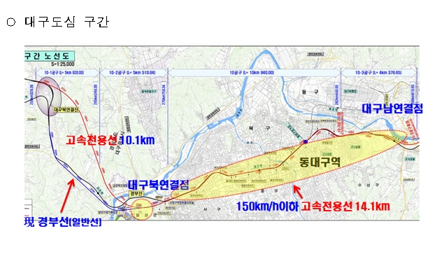8³â ¸¸¿¡ °³ÅëµÇ´Â Àü¿ë¼±·Î´Â ´ëÀü°ú ´ë±¸ÀÇ µµ½É ±¸°£ 45.3km ±¸°£À̸ç, °í¼Ó¼± Áõ°¡¿¡ µû¶ó KTXÀÇ ¼Ò¿ä½Ã°£ÀÌ ¼¿ï¡µ¿´ë±¸, ¼¿ï¡ºÎ»ê ±âÁØÀ¸·Î Æò±Õ 5ºÐÀÌ ´ÜÃàµÈ´Ù.
